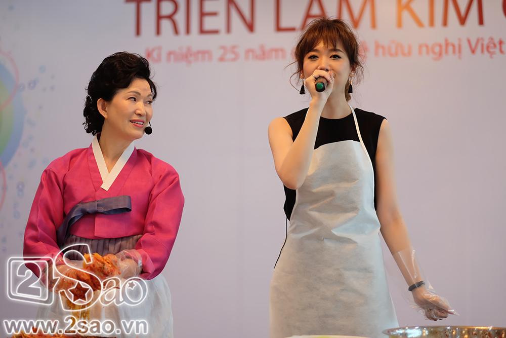 Hari Won vui vẻ hướng dẫn mọi người làm kim chi