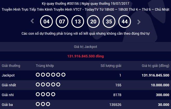 Theo đó, cứ 2 tuần lại có một giải độc đắc có chủ. Giải độc đắc lớn nhất từ trước tới nay là 159 tỷ đồng được hai người chơi chia đôi. Riêng người nhận được nhiều tiền thưởng nhất là 112 tỷ đồng.