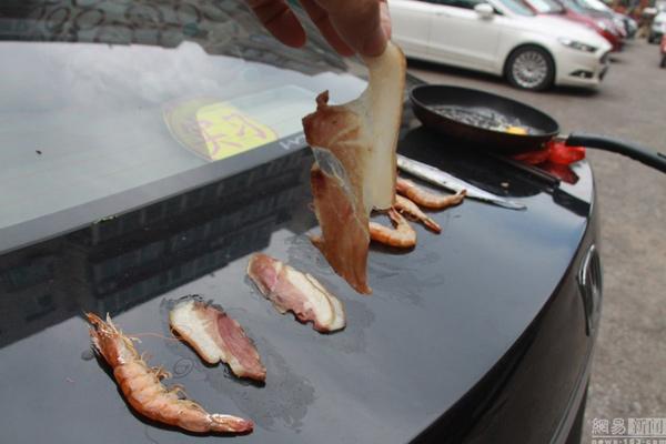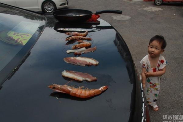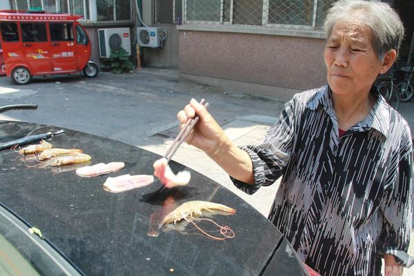 Một cụ bà hồn nhiên nướng thịt, tôm và chiên trứng trên... cốp một chiếc ô tô.