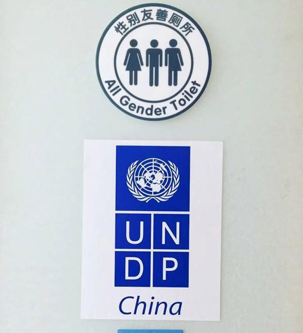 Một số quán bar trên đường Gutou East Street ở quận Dongcheng của Bắc Kinh đã đặt các biển báo khu nhà vệ sinh gồm hình ảnh 1 nam, 1 nữ và 1 người nửa mặc trang phục nữ, nửa mặc trang phục nam. Văn Phòng phát triển và phụ nữ Liên hợp quốc cũng đã đưa ra những biển báo mới.