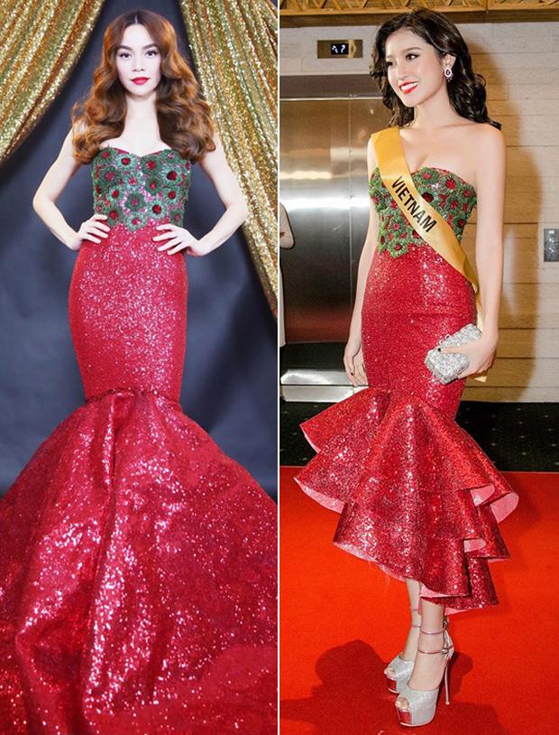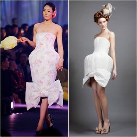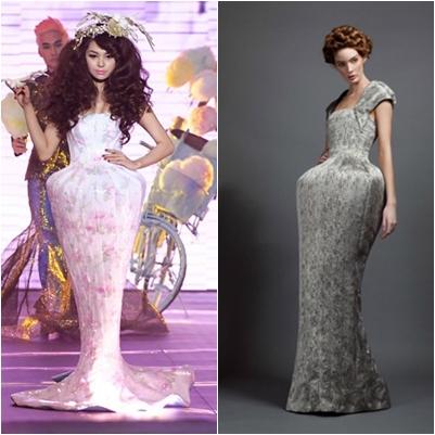 Phom dáng của 2 chiếc váy - một của Lý Quí Khánh (bên trái) và một của Phương My (bên phải) - giống nhau đến 90%.