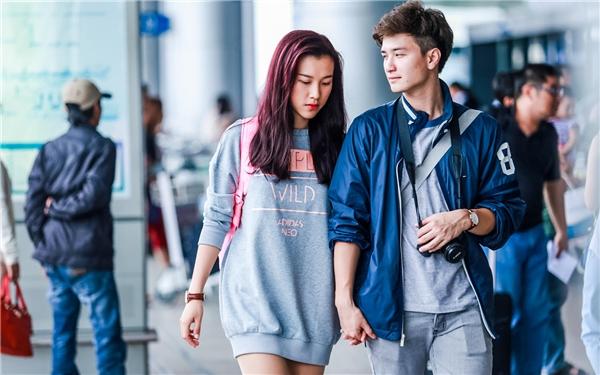 Trong khi Á hậu Hoàng Oanh chọn chiếc váy thun kết hợp ba lô và giày thể thao màu hồng sành điệu, Huỳnh Anh thể hiện sự đồng điệu với bạn gái trong bộ cánh cùng tông màu và đồng hồ đôi.