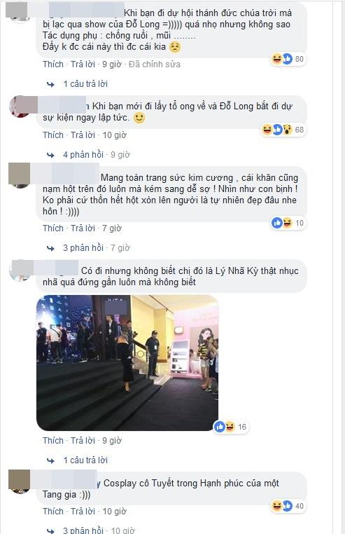 Rất nhiều bình luận hài hước mà cư dân mạng dành cho diện mạo của Cô Kỳ trong sự kiện ngày hôm qua: "Khi bạn đi dự hội Thánh Đức Chúa Trời mà bị lạc qua show của Đỗ Long..."