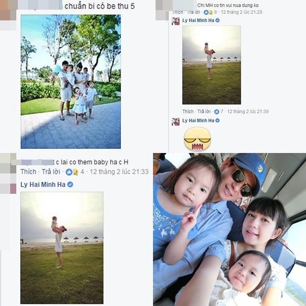 Trong hàng trăm lời hỏi thăm khác về chuyện "cái bụng bầu", Minh Hà cũng rất khiêm tốn chọn cách bấm thích. Trạng thái "có có, không không" của bà xã Lý Hải càng tăng thêm độ nghi ngờ rằng cô đang chuẩn bị lâm bồn lần nữa.