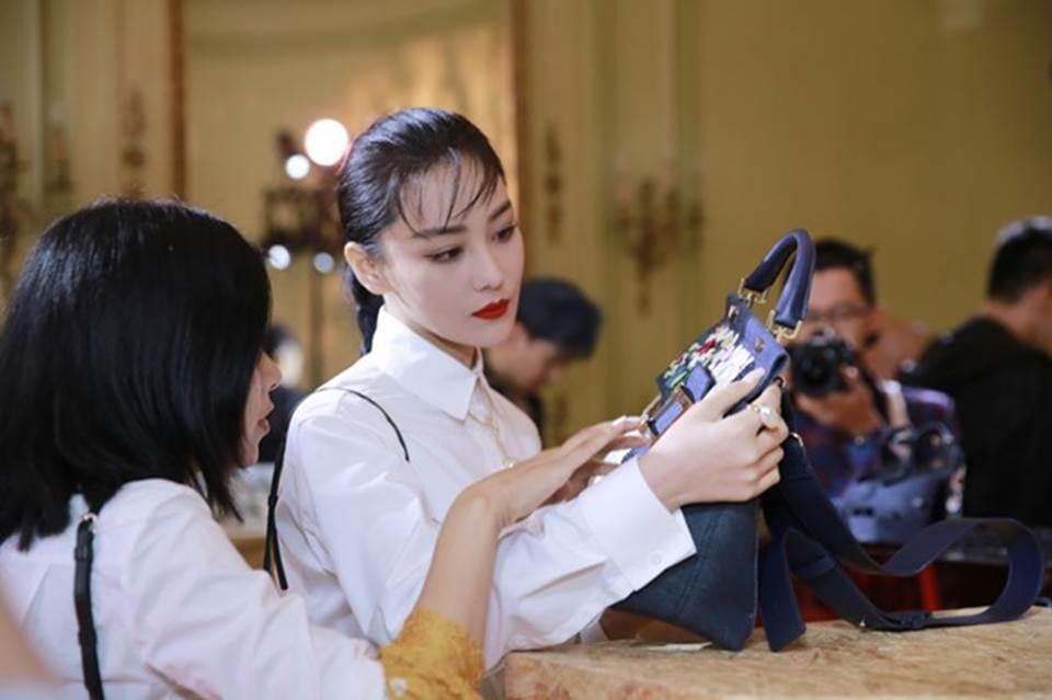 Người đẹp họ Trương chăm chú ngắm nghía bộ sưu tập mới.