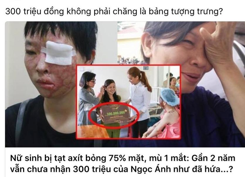 Cho đến hôm nay, sự việc như bùng cháy khi Ngọc Ánh đọc bài viết trên một trang thông tin cho rằng số tiền 300 triệu đồng mỹ nhân này từng hứa trao cho nữ sinh kém may mắn Thu Hương chỉ là bảng tượng trưng.
