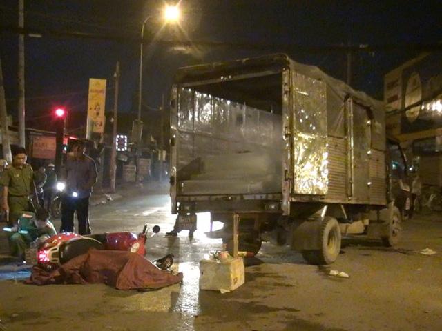 H. phanh gấp văng vào xe tải và bị phương tiện này cán tử vong. Ảnh H. Tâm.