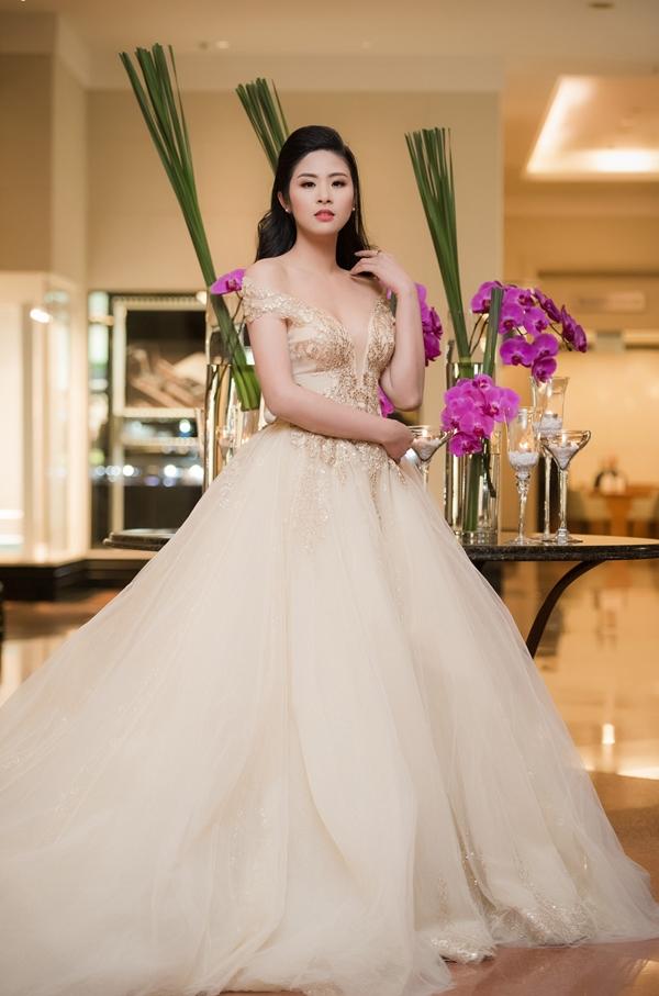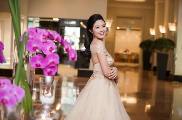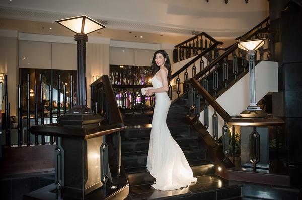 Á Hậu Tú Anh diện chiếc đầm đuôi cá thướt tha, phần vai được thiết kế rất táo bạo giúp cô khoe được vai trần ngọc ngà. Mái tóc dài buông lơi và gương mặt được trang điểm nhẹ nhàng theo phong cách tự nhiên giúp cho Tú Anh khoe được vẻ đẹp trong sáng và đầy cuốn hút.