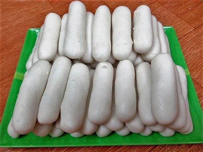 - Bước 4: Đun nồi nước sôi, để nước sôi già rồi thả bột đã nặn thành hình vào luộc. Khi bột nổi lên bạn để sôi thêm khoảng 1-2 phút là đã chín. Tiếp đó bạn vớt ra thau nước đá lạnh cho bột săn lại. Đây cũng là cách để bánh gạo không bị dính vào nhau.