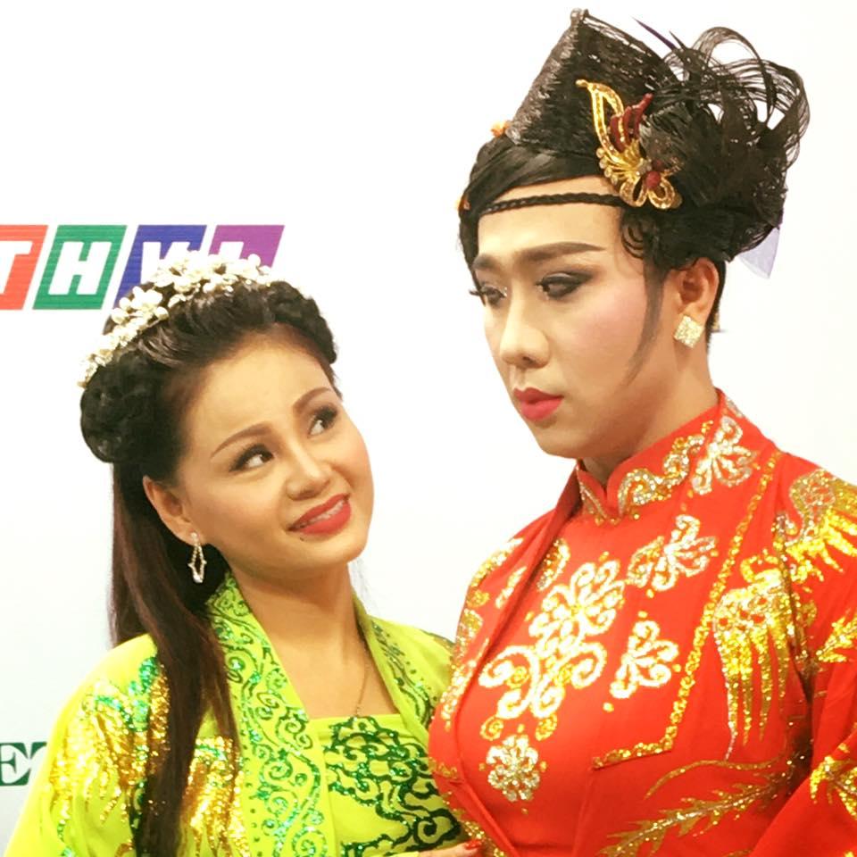 Chỉ xét về chiều cao, Việt Hương đã không thể thắng được "mỹ nhân" áo xanh.