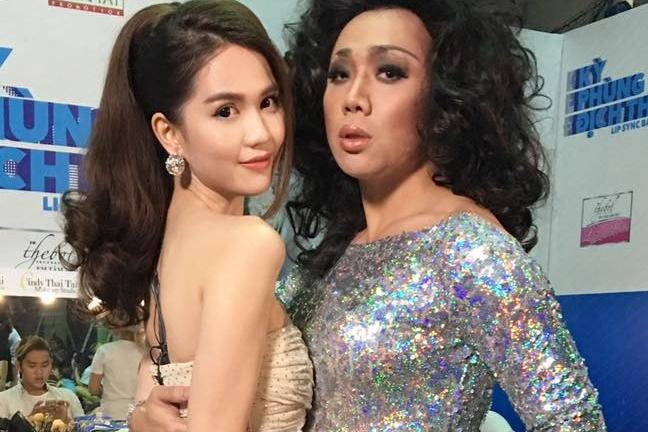 Chỉ xét về chiều cao, Việt Hương đã không thể thắng được "mỹ nhân" áo xanh.