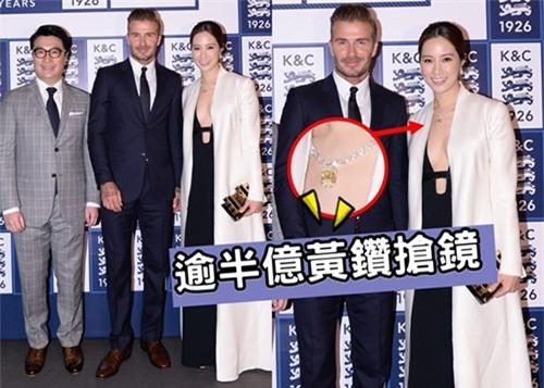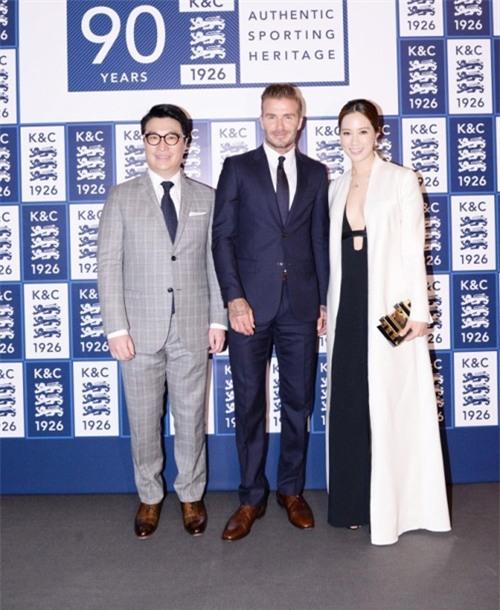 Hai vợ chồng chụp ảnh chung cùng David Beckham.