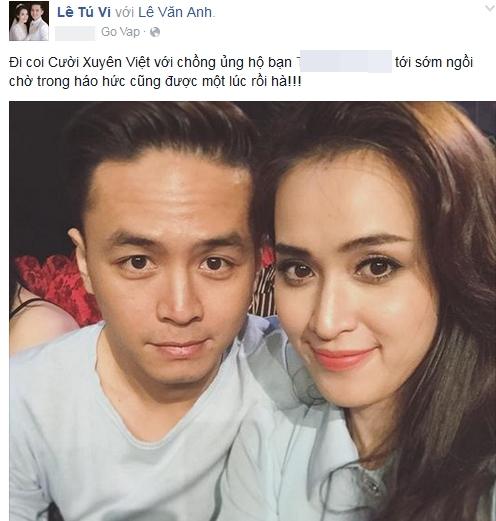 Trong đêm diễn tối qua, cặp vợ chồng nổi tiếng Tú Vi - Văn Anh cũng tới góp mặt và cổ vũ cho người bạn Trần Nam Thư tham gia chương trình. Chương trình được phát sóng trực tiếp và là người nguyên tắc nên Tú Vi - Văn Anh đã có mặt từ rất sớm ổn định chỗ ngồi trên hàng ghế nghệ sỹ theo chỉ dẫn.