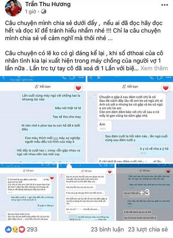 Status chia sẻ chuyện người phụ nữ có chồng ngoại tình khi vợ mang bầu của Thu Hương