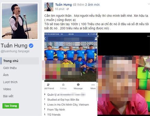 Tối qua 11/7, trên Fanpage của ca sĩ Tuấn Hưng bất ngờ đăng tải ảnh chụp Facebook của một người lạ cùng dòng chia sẻ tuyên bố sẽ chi từ 100 đến 200 triệu cho ai có thể giúp anh tìm ra người này hoặc giúp anh… bắt sống. Theo nhiều bình luận lý do Tuấn Hưng truy tìm thanh niên trong ảnh vì đã có lời nói xúc phạm đến vợ của nam ca sĩ.