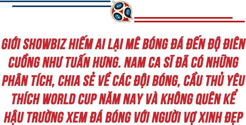 - Nhiều người thắc mắc Tuấn Hưng là nam ca sĩ hâm mộ bóng đá số 1 Việt Nam sao không dám hủy sô để dành trọn một tháng sang Nga chứng kiến các cầu thủ đá cho thỏa mãn đam mê?