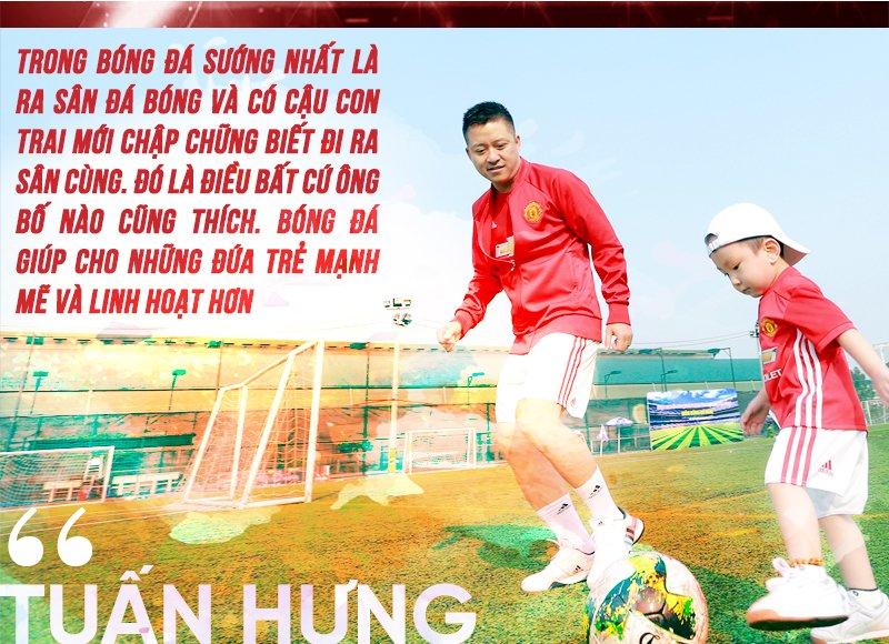 Trong bóng đá sướng nhất là ra sân đá bóng và có cậu con trai mới chập chững biết đi ra sân với mình. Đó là điều bất cứ ông bố nào cũng thích. Bóng đá cũng giúp cho những đứa trẻ mạnh mẽ và linh hoạt hơn.