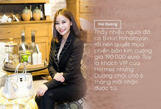 Có thể lấy câu chuyện mua sắm túi Birkin Himaylaya phiên bản kim cương của Hoa hậu Mrs Áo dài Hải Dương làm ví dụ. Vì thấy đã có nhiều người đẹp sở hữu chiếc túi này nên cô quyết định mua hẳn phiên bản kim cương có giá lên tới 190.000 euro (4,6 tỉ đồng) cho khác với số đông. Vốn mua rất nhiều túi Hermes từ trước đó nên Hải Dương đã có thẻ VIP tại store Hermes bên Pháp và đủ điều kiện để vào waiting list, sau đó cô phải chờ đến 6 tháng để được sở hữu chiếc túi.