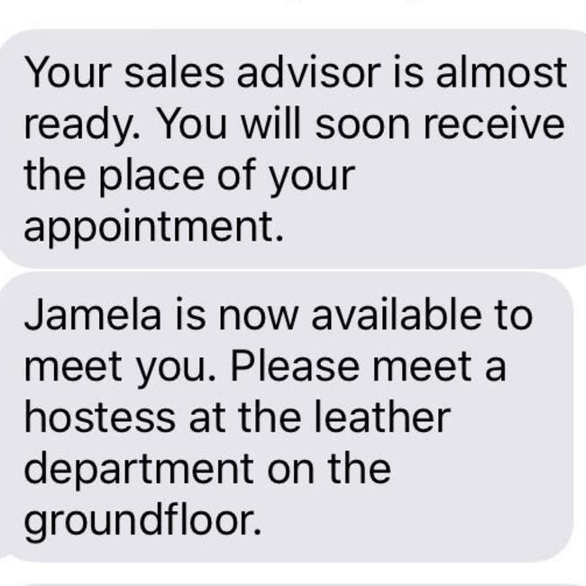 Những tin nhắn store Hermes gửi đến điện thoại của Mel sau khi cô lấy số thành công.