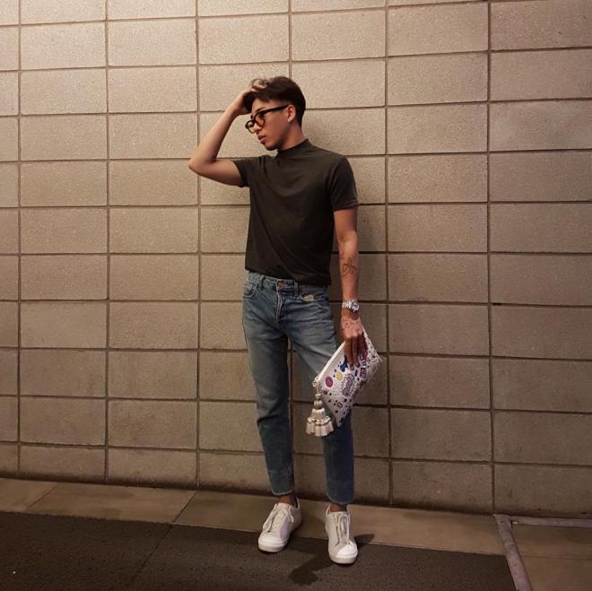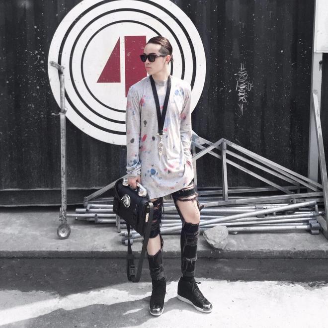 Không chỉ ấn tượng nhờ vào hình ảnh phá cách mà chàng stylist kiêm fashionista này còn sở hữu gout thời trang cá tính, unisex nổi loạn đến từ chính tính cách của mình. Chàng trai luôn khiến giới mộ điệu phấn khích mỗi khi anh xuất hiện trong bất cứ sự kiện thời trang hay trên các bức ảnh streetstyle vì độ “đẹp - độc - lạ”. Nhưng điều ấy lại đến từ chính các mẫu phụ kiện khi anh hòa phối cùng trang phục như giày, găng tay, mũ hay thậm chí là túi xách.