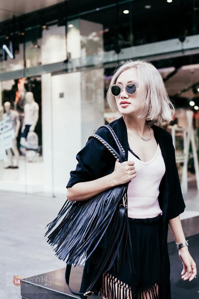 Cũng chọn túi xách tua rua nhưng lần này Hoàng Ku lại biến hóa set đồ trở nên