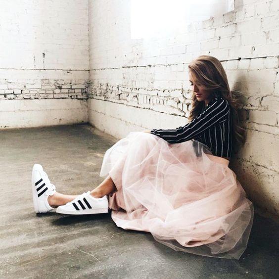 Điểm thú vị khi phối váy tulle chính là tùy theo cách lựa chọn phụ kiện mà nó có thể mang đến nhiều phong cách khác nhau. Với thiết kế xòe xếp tầng bay bổng, bạn có thể biến mình thành cô công chúa dịu dàng, nữ tính. Tuy nhiên chỉ cần vài biến tấu đơn giản với đôi giầy sneaker hoặc chiếc áo khoác da.. bạn cũng có thể biến đổi thành một cô nàng cá tính, năng động cực kì ấn tượng.