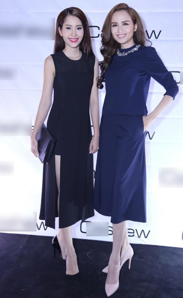 Hoa hậu Diễm Hương và Nam Em trong một sự kiện thời trang. Cả hai từng có một mối quan hệ rất thân thiết