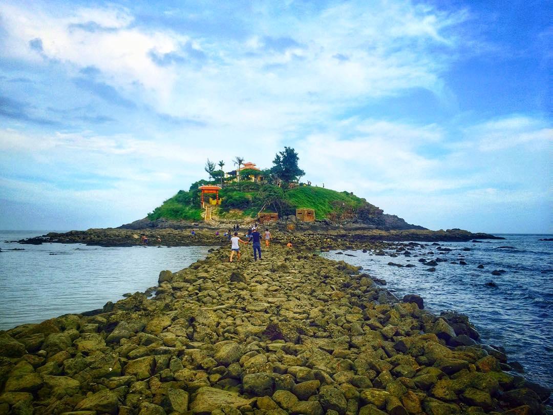 Và sỡ dĩ gọi là “Nhất Sơn Tự” cũng bởi nhờ “mẹ” thiên nhiên đã khéo léo “kiến tạo” ra một con đường trên nền biển xanh, thành ra hình dáng hòn đảo giống với chữ nhất trong Hán tự.