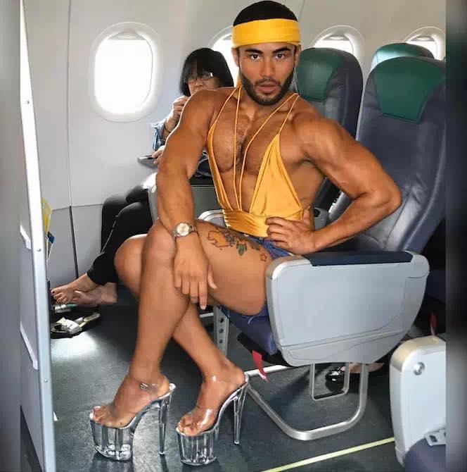 Điều khiến khán giả thán phục ở anh chàng sáu múi này không chỉ bởi những bước đi uyển chuyển mà còn catwalk trên bộ sưu tập giầy "cà kheo" nhìn là choáng. Kho giầy của Sinon sở hữu đủ chủng loại boots, giầy cao gót... đặc biệt phần đế đều cao từ 20cm trở lên.