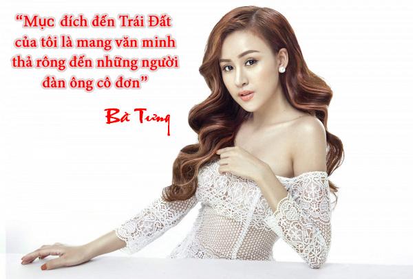 Lên tiếng trước lời đàm tiếu của dư luận, trong một talkshow trò chuyện cùng MC Thợ Cả vào năm 2013 - Bà Tưng khẳng định: "Mục đích đến Trái Đất của tôi là mang văn minh thả rông đến những người đàn ông cô đơn".