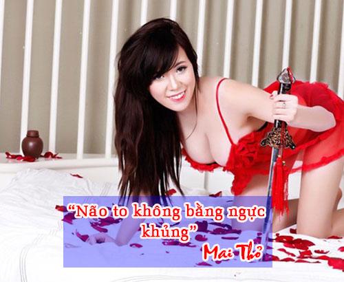 Không dừng lại ở đó, tại một talkshow trò chuyện cùng MC Thợ Cả năm 2013, Mai Thỏ gây chú ý khi không quan tâm đến trọng lượng của não mà chỉ quan tâm đến số đo vòng 1 là bao nhiêu. Người đẹp "ngực khủng" khẳng định: “Não thì không thể bơm được nhưng vòng 1 thì có thể bơm được”.