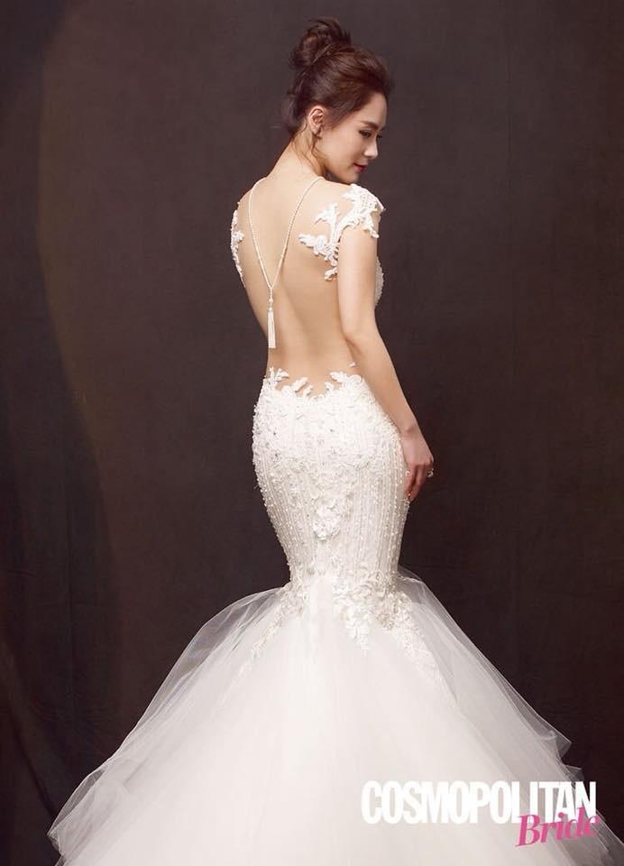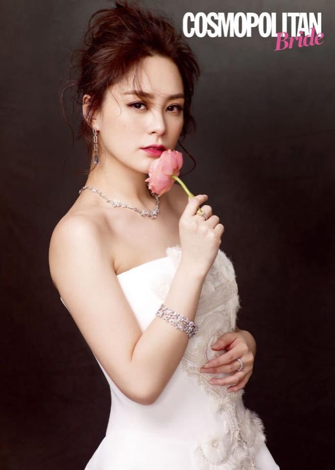 Mới đây, Chung Hân Đồng đã một lần nữa hóa thân thành cô dâu xinh đẹp trên tạp chí Cosmopolitan Bride. Hạnh phúc đến muộn ở tuổi 37, mỹ nhân của nhóm Twins không giấu được nụ cười ngọt ngào ngập tràn niềm vui.
