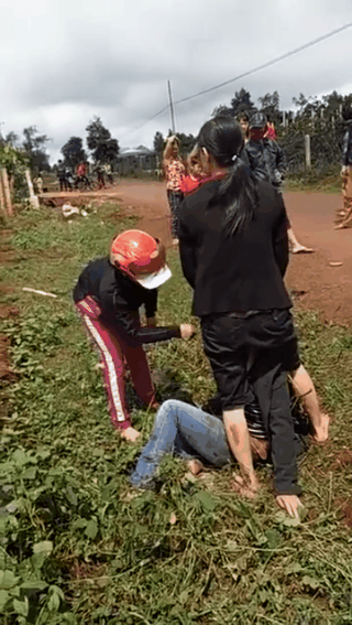 Cô gái trẻ bị đánh ngất xỉu, nhóm phụ nữ vẫn không ngừng đánh đập.