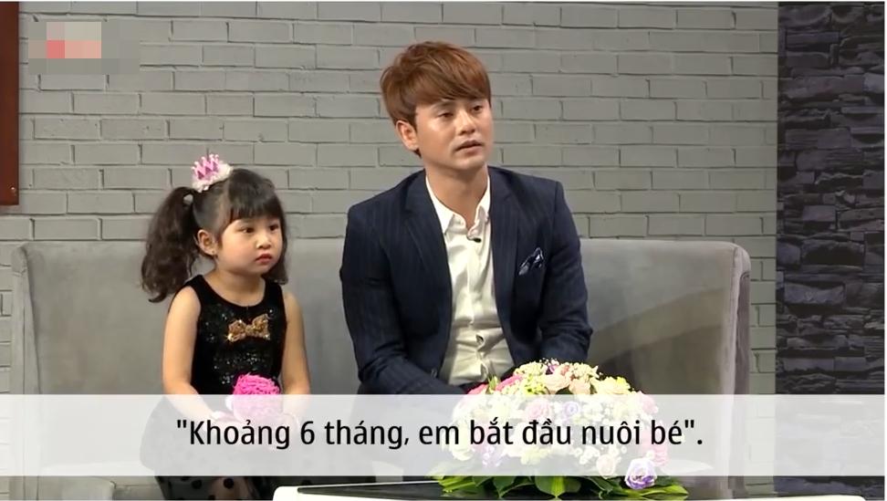 "Giai đoạn sinh bé gia đình xảy ra biến cố rất lớn. Lúc đó, tôi bị phá sản mất hết tất cả công ty nên gia đình phải làm lại từ đầu. Tôi phải ngưng ca hát và đi làm những công việc bình thường. 6 tháng sau khi sinh bé, tôi và vợ cũ chia tay. Từ khoảng chừng bé 6 tháng, tôi bắt đầu nuôi con một mình", Ưng Đại Vệ kể lại.