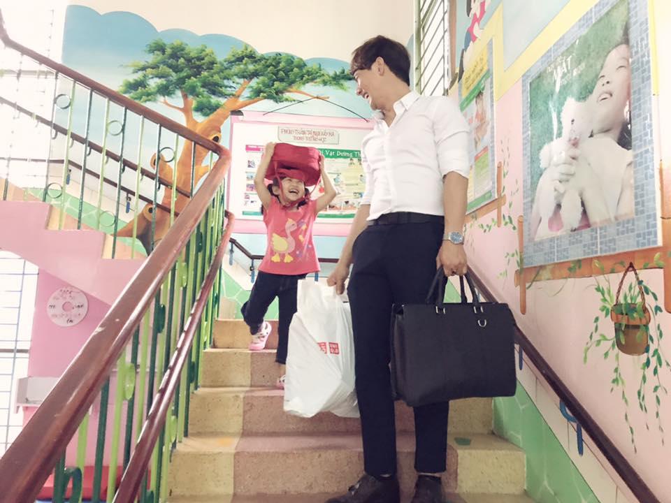 Nói về tính cách của con gái, nam ca sĩ cho rằng: "Hồi nhỏ bé sống theo lịch công việc của tôi. Bé ở nhà vài tháng, lên ông bà nội vài tháng và về với cô vài tháng. Bé cứ đi đi đi lại mỗi một nhà như vậy cũng tạo áp lực. Cho nên con rất biết điều và không quậy".