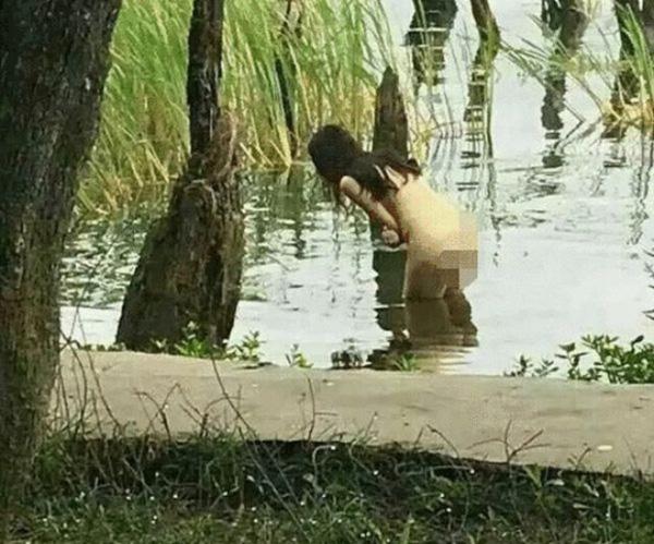 Trước khi bước xuống hồ, cô còn cẩn thận kiểm tra xem có ai trong khu vực này không. Tuy nhiên, cô không ngờ rằng chính lái xe là người đã lén chụp những bức hình của cô và đăng tải lên mạng xã hội.