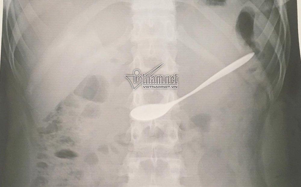 Tại đây, các bác sĩ đã chụp X-quang, xác định chiếc thìa nằm tại hang vị dạ bày của bệnh nhân.