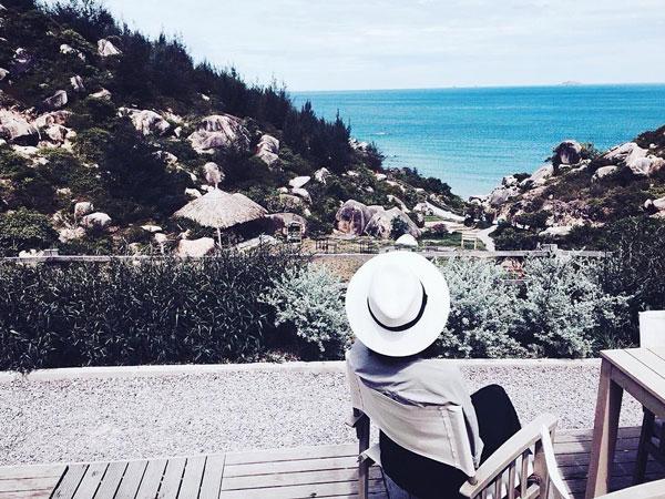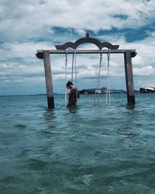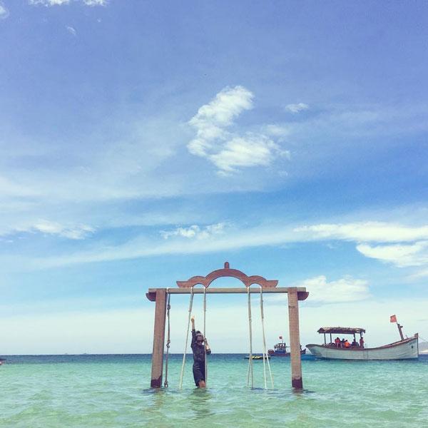 hìn từ xa, chiếc xích đu này giống như một cảnh cửa giữa biển trời mênh mông xanh ngắt (Ảnh : Trinh Nguyễn)