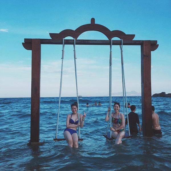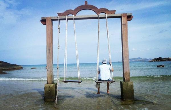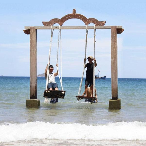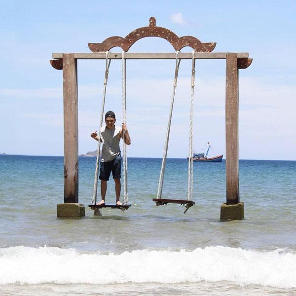 Đây có lẽ là chiếc xích đu giữa biển đầu tiên ở Việt Nam, chính vì thế mà nhiều bạn trẻ tỏ ra hào hứng và thích thú khi đến với Trung Lương ( Ảnh : willynonla )