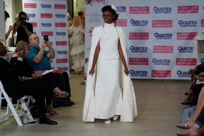 Xu hướng váy cưới với những chiếc váy tua rua cũng được vận dụng một cách tinh tế với chất liệu giấy gần gũi với thiên nhiên.