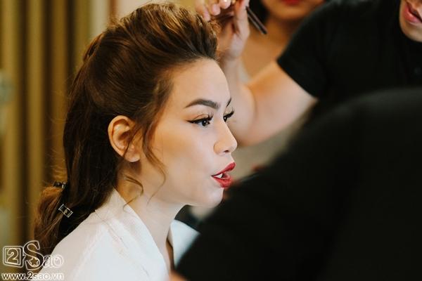 Theo như Hồ Ngọc Hà chia sẻ cô phải gồng mình để vác lên người bộ váy nặng