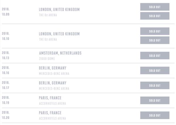 Điều này cũng đồng nghĩa với việc BTS đã bán hết tổng cộng 300,000 vé cho tour lưu diễn thế giới của mình, lấp kín các sân vận động nổi tiếng như Mercedes-Benz tại Đức, The O2 tại Anh… Đây là một vinh dự, đồng thời cũng là kỷ lục đầu tiên mà một nhóm nhạc đến từ Hàn Quốc đạt được.