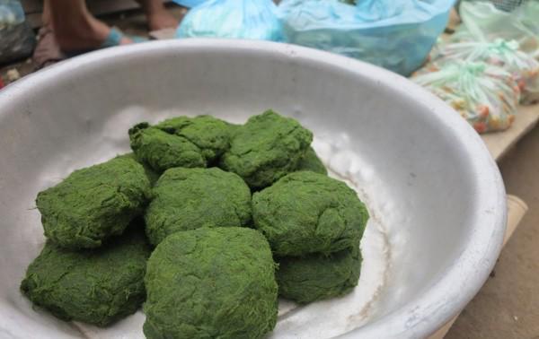 Khi rêu được lấy về, làm sạch sẽ được đem tẩm ướp gia vị. Đó là tỏi thái mỏng, muối, mì chính, cộng thêm hành và chút mỡ lợn rồi trộn đều, dùng lá đu đủ (hoặc lá rong) gói thành nhiều lớp buộc chặt lại. Lớp lá đu đủ bén lửa bốc lên mùi cay cay, thơm thơm. Đợi đến khi những lá đu đủ bên ngoài chuyển thành màu đen, họ mới bóc từng lớp lá ra để thưởng thức. Mùi tỏi và hành quyện với mùi nồng nồng của rêu đá tạo nên một hương vị rất riêng biệt và khó quên.