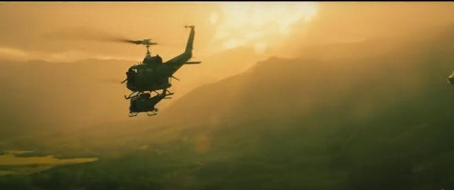 Dàn trực thăng bay xuyên vào không gian, rồi bất ngờ một chiếc bị đâm vỡ nát bởi vật thể lạ. Đây cũng là khung cảnh của vùng Tam Cốc với những cánh đồng lúa bạt ngàn.