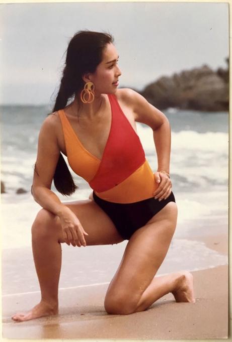 áo tắm, nhưng một mảnh. Còn tôi chụp 2 mảnh từ năm 1986."