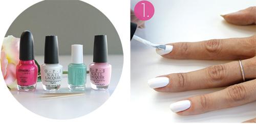 Bước 1: Phủ 2 lớp sơn màu trắng lên mỗi móng.