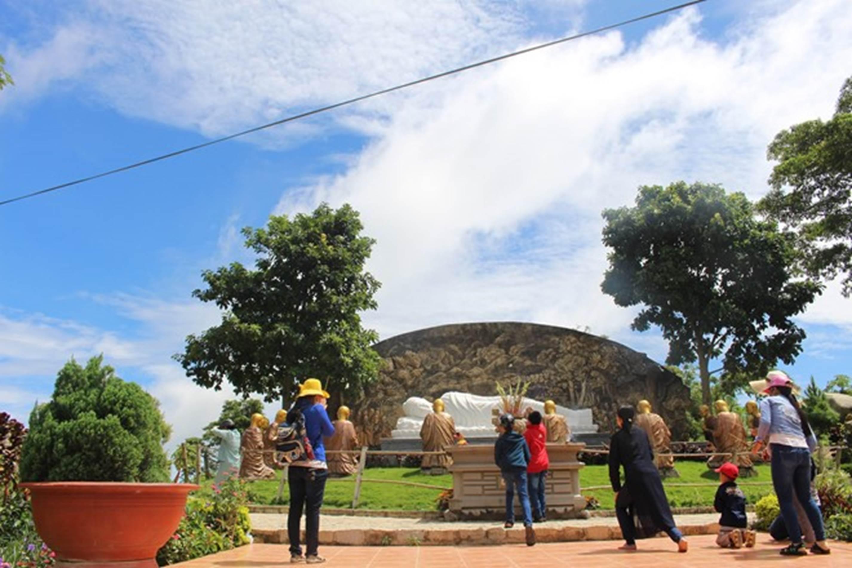 Hai giờ leo núi vất vả và mệt mỏi khá nhiều. Nhưng bù lại, bạn được tận hưởng cảm giác vui sướng khi được ngắm tượng Phật Di Lạc lớn nhất Việt Nam và châu Á.