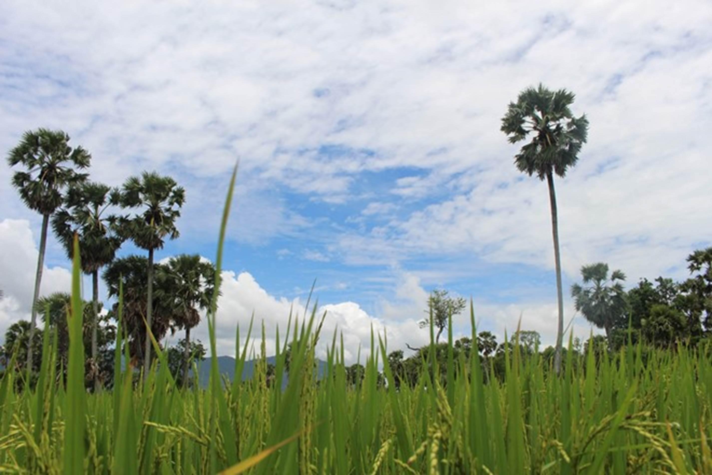Một bên ruộng đã qua mùa gặt. Bạn đừng quên ghé bên đường về và mua đường thốt nốt về làm quà, rất rẻ và ngon.