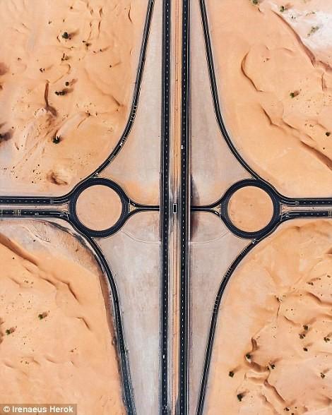 Khi nói đến Dubai, UAE, sẽ không ít người liên tưởng đến vùng đất giàu có với những siêu xe, những tòa nhà chọc trời. Nhưng dưới ống kính của Irenaeus Herok, nhiếp ảnh gia người Ba Lan, Dubai từ trên không mang một vẻ đẹp siêu thực rất khác biệt.