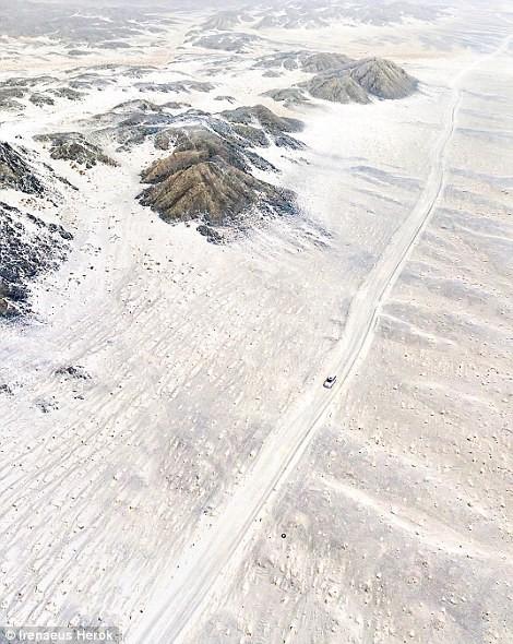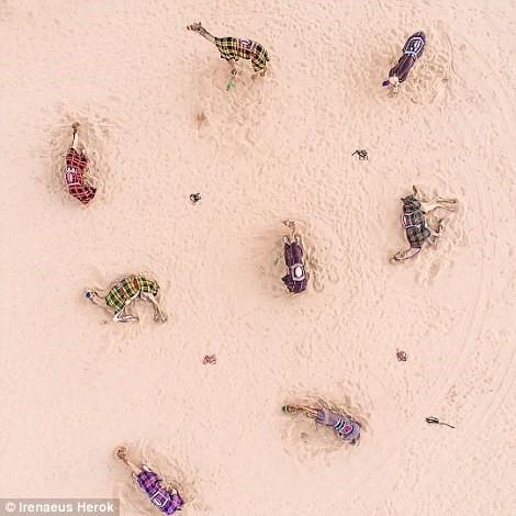 Qua những hình ảnh từ trên không này, người xem dường như cảm nhận được sức nóng sa mạc, làn gió biển cùng ánh nắng của vùng Trung Đông. Trong ảnh là hình ảnh một đàn thú hoang trên sa mạc.
